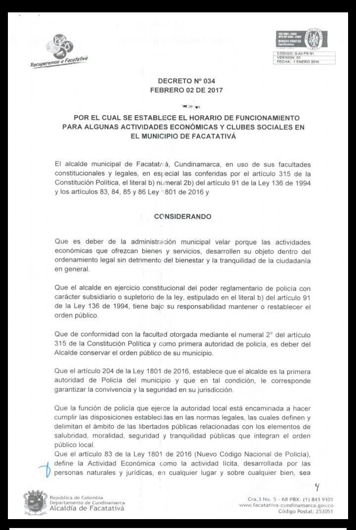 Facatativá, conozca el nuevo decreto para establecimientos nocturnos y lugares de alto impacto