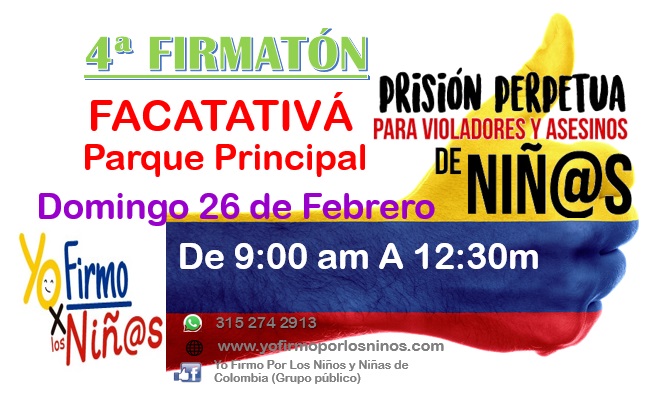 Invitación especial para la comunidad de Facatativá para que participen de la cuarta firmatón para la disminución de los salarios a los congresista y prisión perpetua para violadores, asesinos y secuestradores de niños .