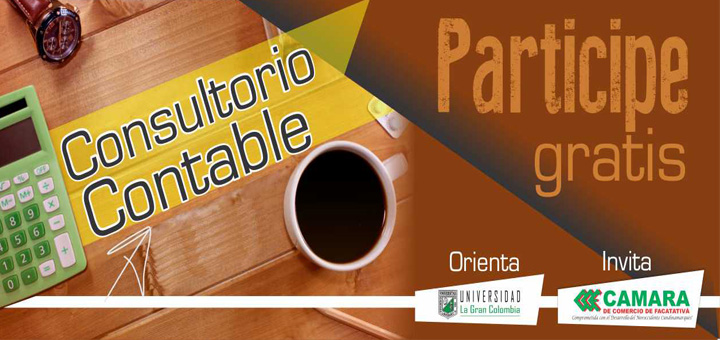 La Cámara de Comercio de Facatativá en alianza con la Universidad La Gran Colombia, invita a empresarios y comerciantes a participar gratuitamente del Consultorio Contable, un espacio donde podrá despejar dudas y aclarar conceptos relacionados con las nuevas normatividades, desarrollo de casos prácticos, cierre de operaciones y temas aplicados directamente a su empresa o negocio.