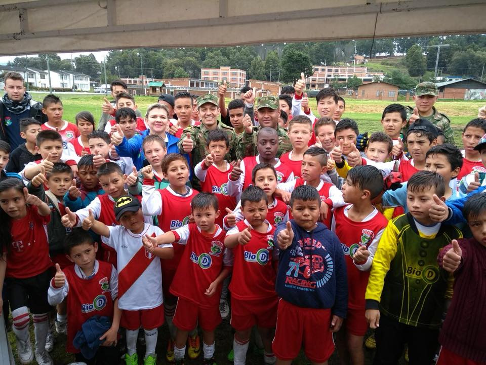 Hasta las instalaciones del Batallón de Infantería llegaron las niñas y niños con sus entrenadores del proyecto social y deportivo lidergol, a un día de entrenamiento invitados por los oficiales, oficiales de reserva, sub-oficiales y soldados del batallón, y se encontraron con un espacio seguro para poder desarrollar su actividad deportiva.