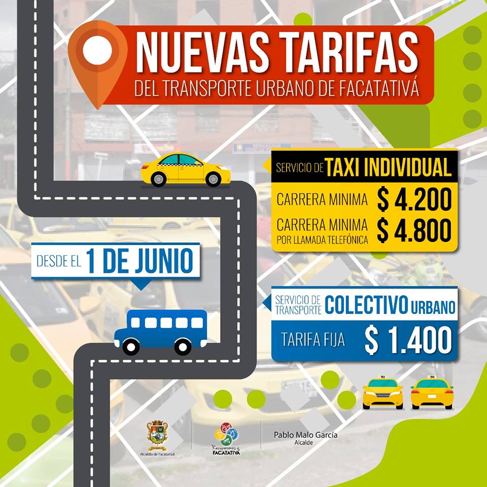 Facatativá, 31 de mayo de 2018 – El gobierno de Facatativá expidió el decreto 127 del 28 de mayo de 2018 por medio del cual se fijan las tarifas del servicio de transporte público de pasajeros en el municipio.