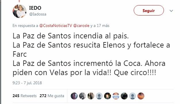 Encienden velas quienes sostenían que en Colombia habría paz el día que se firmaran los acuerdos con terroristas y narcos. Grotesco oportunismo politiquero