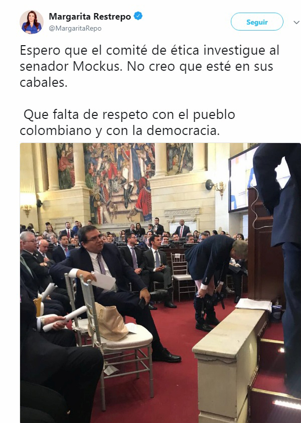 Lo anterior debido a la reclamación que le hizo la Senadora uribista investigada por supuesta compra de votos, Margarita Restrepo, al profesor Mockus por su controversial acto de mostrar las nalgas.