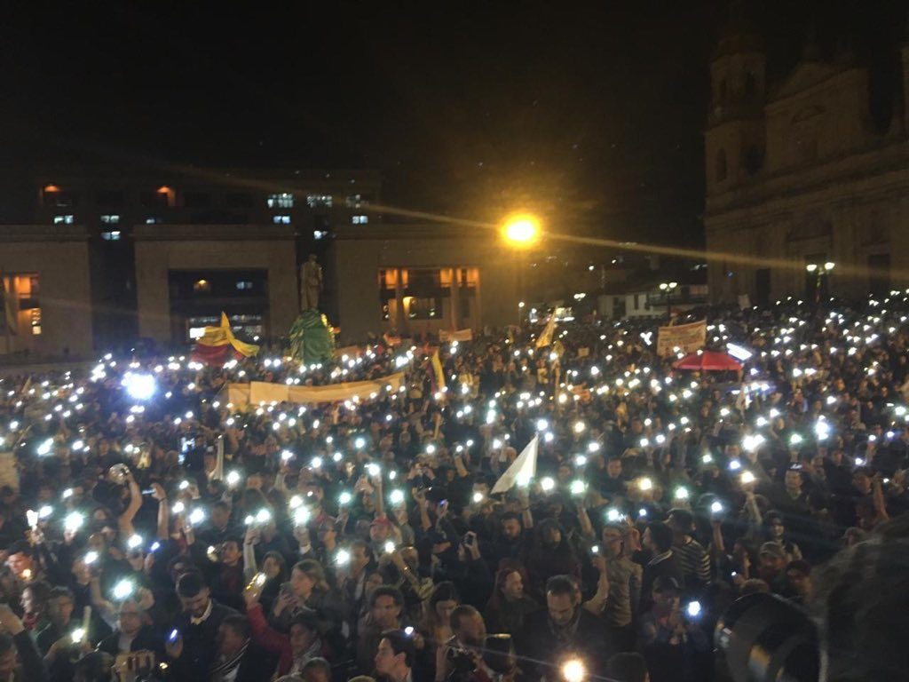 Acompañados de muestras artísticas, performance, carteleras y arengas llegaron hasta la Plaza de Bolívar en Bogotá donde se hizo notable la gran cantidad de personas que reiteran el compromiso del país con el posconflicto.