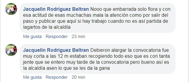 “No fue un proceso que fue confiable a las 12:44 no estaba recibiendo las solicitudes de las personas que asistían al evento, es una falta de respeto con el tiempo o con la necesidad de la gente, algunos funcionarios de la alcaldía manifestaron que el evento no había tenido la acogida esperada y por eso terminaron antes el evento “. afirmaron algunos asistentes a nuestro medio de comunicación vía telefónica .
