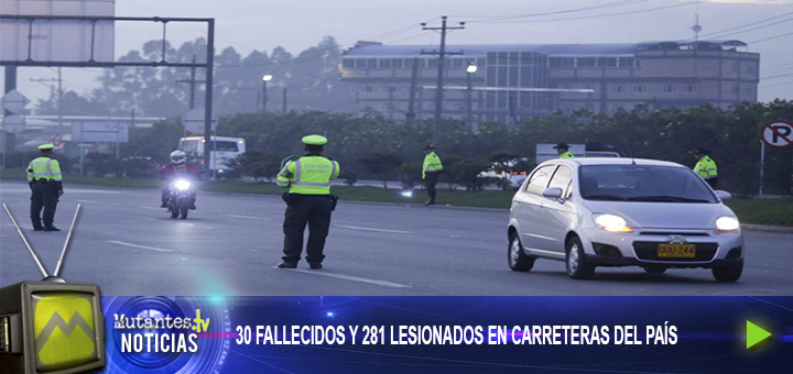 Desde el viernes en la tarde hasta este domingo van 232 accidentes de tránsito que dejan 30 fallecidos y 281 lesionados.