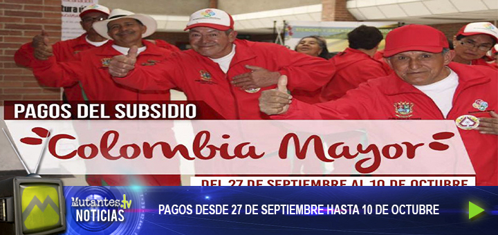informa a los adultos mayores beneficiarios del subsidio económico del programa «Colombia Mayor», que el pago correspondiente al mes de septiembre se realizará desde hoy hasta el 10 de octubre.