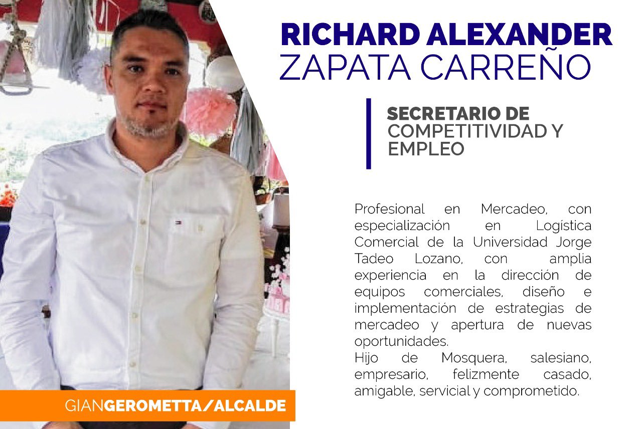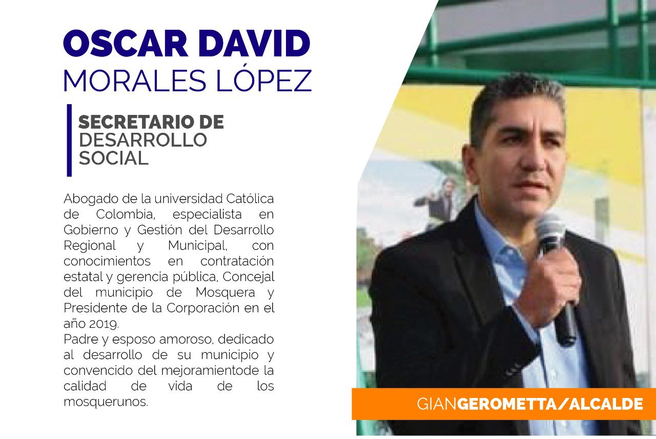 Gian carlo Gerometta Alcalde Electo de Mosquera publica algunos nombres que harán parte de su gabinete por mutantes tv · Publicada 19 diciembre, 2019 · Actualizado 19 diciembre, 2019 Share Post Whatsapp Share Post Whatsapp