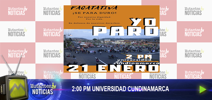 Este martes #21E, primera jornada del Paro Nacional de 2020 en Facatativá y el resto del país. Saldremos todos unidos a protestar en contra de las políticas neo-liberales impuestas por el gobierno, que perjudican a la gran mayoría de la población colombiana. La marcha llegara al Parque Principal Simón Bolívar, aunque se tiene pensado hacer algunos plantones en otras partes de la ciudad. El punto de encuentro será en la Universidad Cundinamarca.