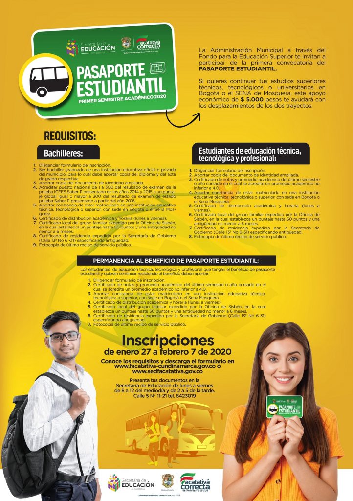Facatativá, se abren las inscripciones para el pasaporte estudiantil primer semestre 2020