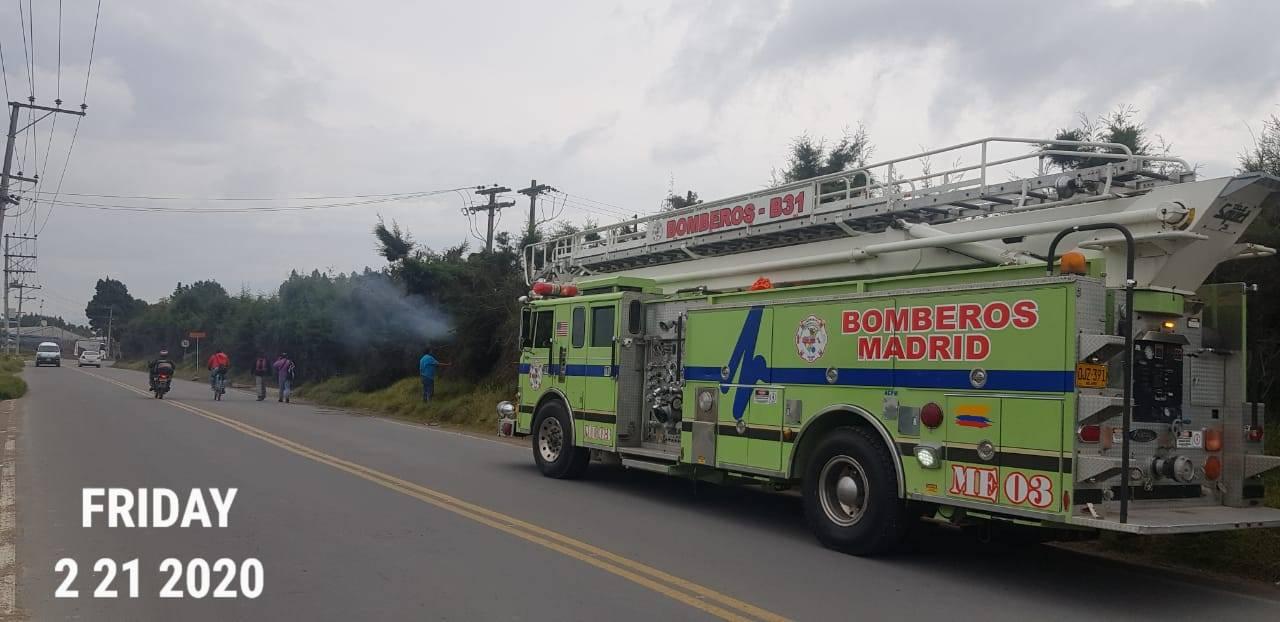 Bomberos de Madrid Cundinamarca reportaron en la tarde del pasado viernes 21 de febrero de 2020, un Incendio forestal en el Cerro Casablanca, realizando control, se requirió de 7 unidades y dos máquinas de bomberos.