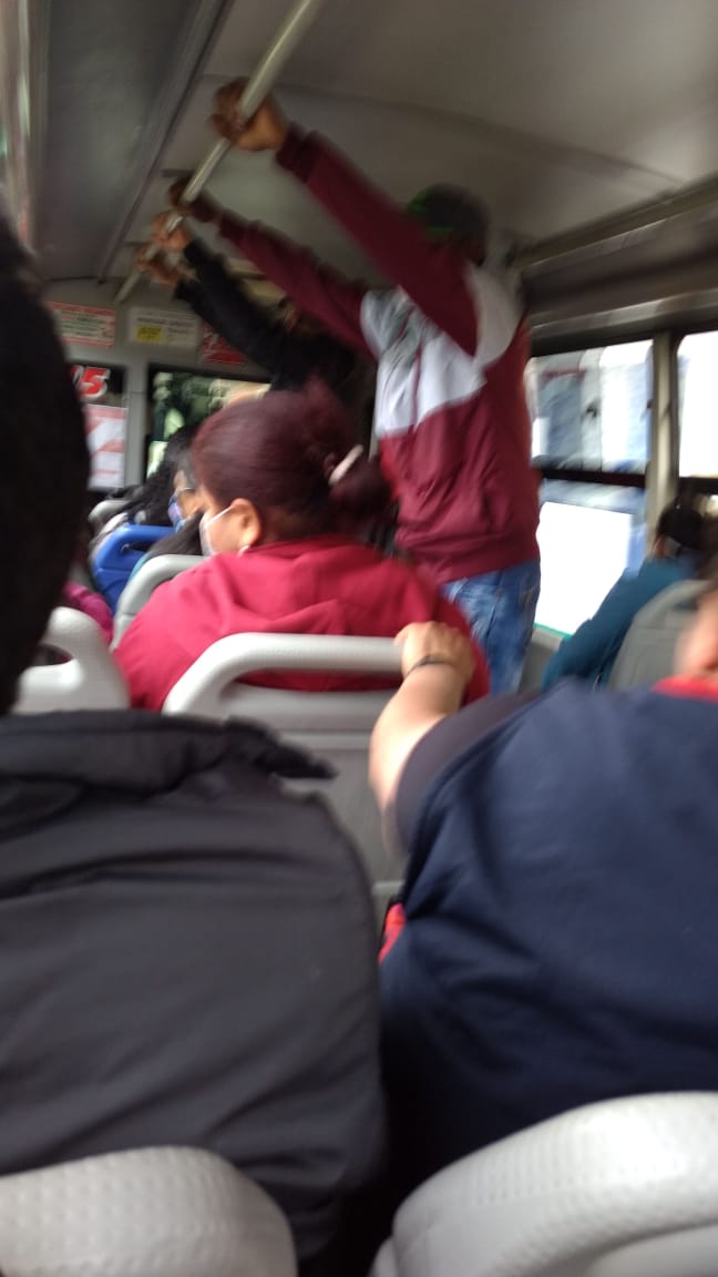 “Miren como están las busetas de servicio municipal para el sector de Prado, Manablanca y Cartagenita. “De nada sirve tanto protocolo, si el sistema de transporte no pasa con normalidad, muchas veces debemos esperar hasta 20 minutos las busetas”.