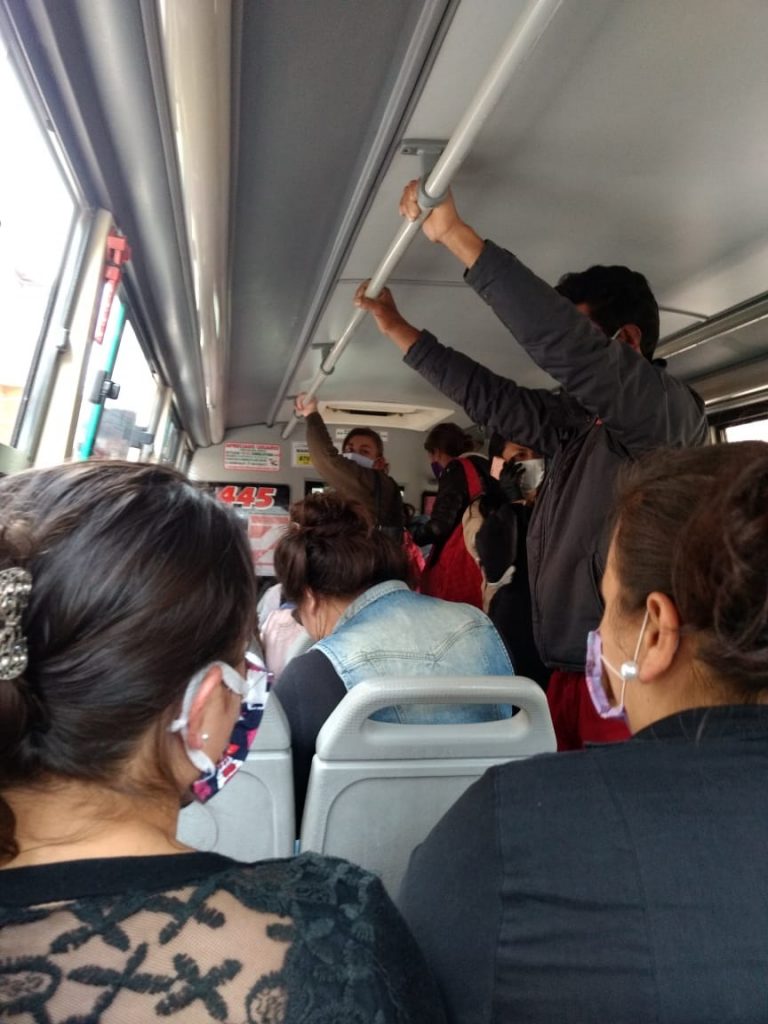 Mutantes Tv ha podido comprobar que los conductores utilizan tapabocas y guantes, lo mismo que los usuarios, sin embargo dentro de estos vehículos puede estar viajando de 20 a 35 pasajeros dependiendo del sector, una situación bastante compleja cuando en Facatativá se ha dispuesto la medida del pico y placa y cuando las personas no pueden tomar un taxi en la calle, según lo afirma el decreto presidencial y municipal, solo un taxi puede prestar el servicio si es solicitado por línea telefónica o plataformas digitales .