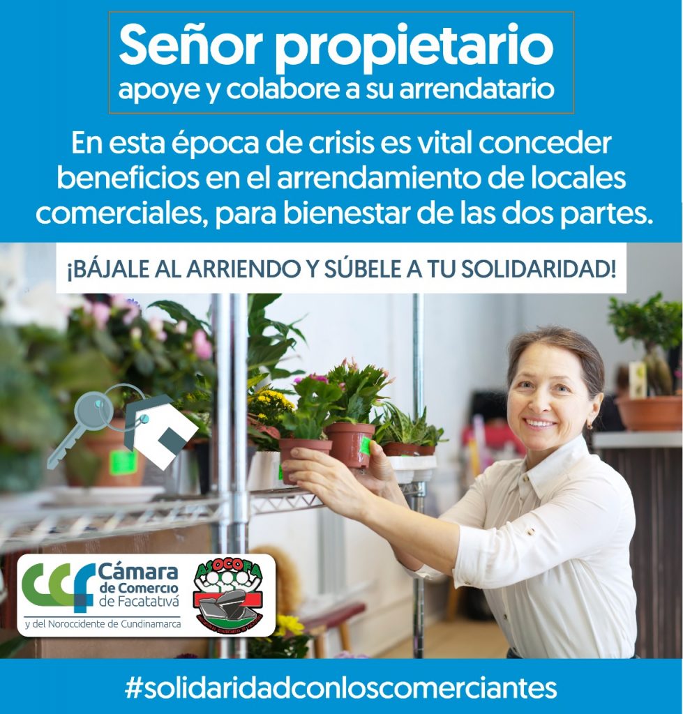 Señor propietario en esta época de crisis, necesitamos de tú solidaridad y comprensión con los comerciantes de los locales comerciales. Llega a un acuerdo con tu arrendatario para ajustar el valor del canon de arrendamiento, en beneficio de las dos partes. La Cámara de Comercio prestará el servicio de Conciliación en forma gratuita en temas de arrendamiento de locales comerciales..