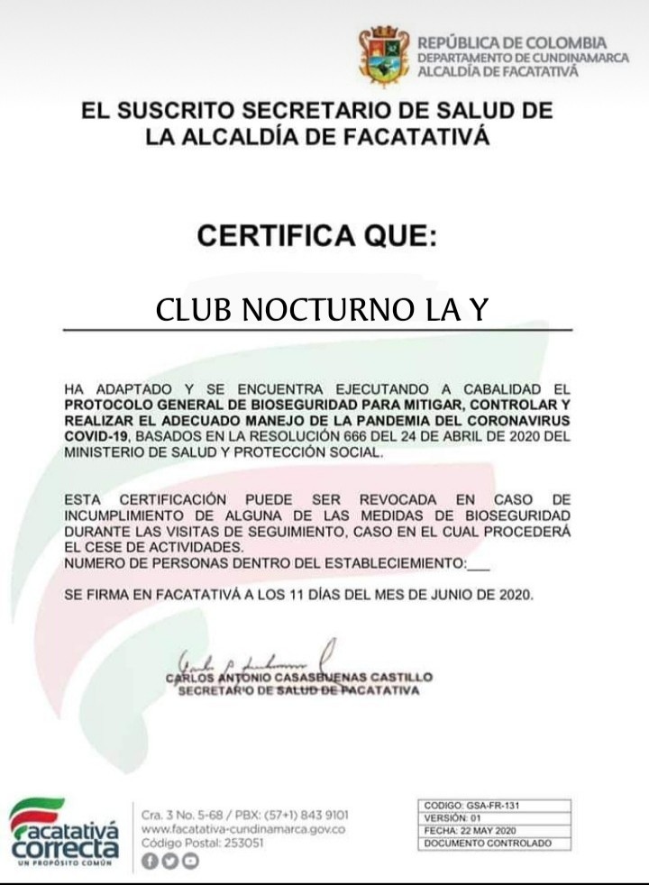 Varios comerciantes de Facatativá se comunicaron con Mutantes Tv para infórmanos que el famoso Club Nocturno conocido como la Y estaría funcionando, por una certificación autorizada por la Secretaría de Salud de Facatativá.