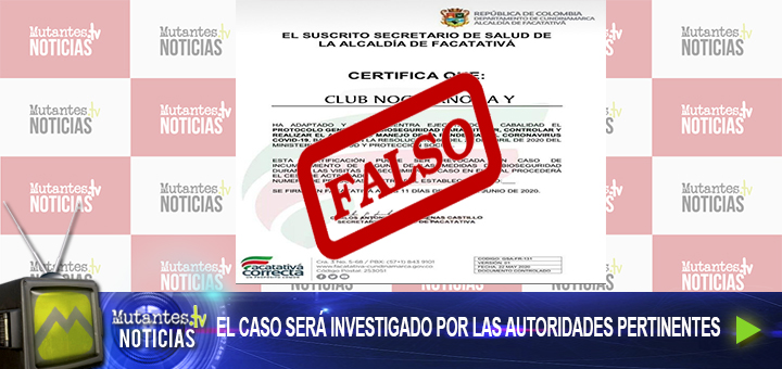 Por estas denuncias Mutantes Tv se comunicó con él Secretaria de Salud Doctor Carlos Casasbuenas quien afirmó a nuestro Director Julián Duque García que el certificado es fALSO y que en ningún momento la secretaría ha emitido un certificado para que este establecimiento pueda estar en funcionamiento.
