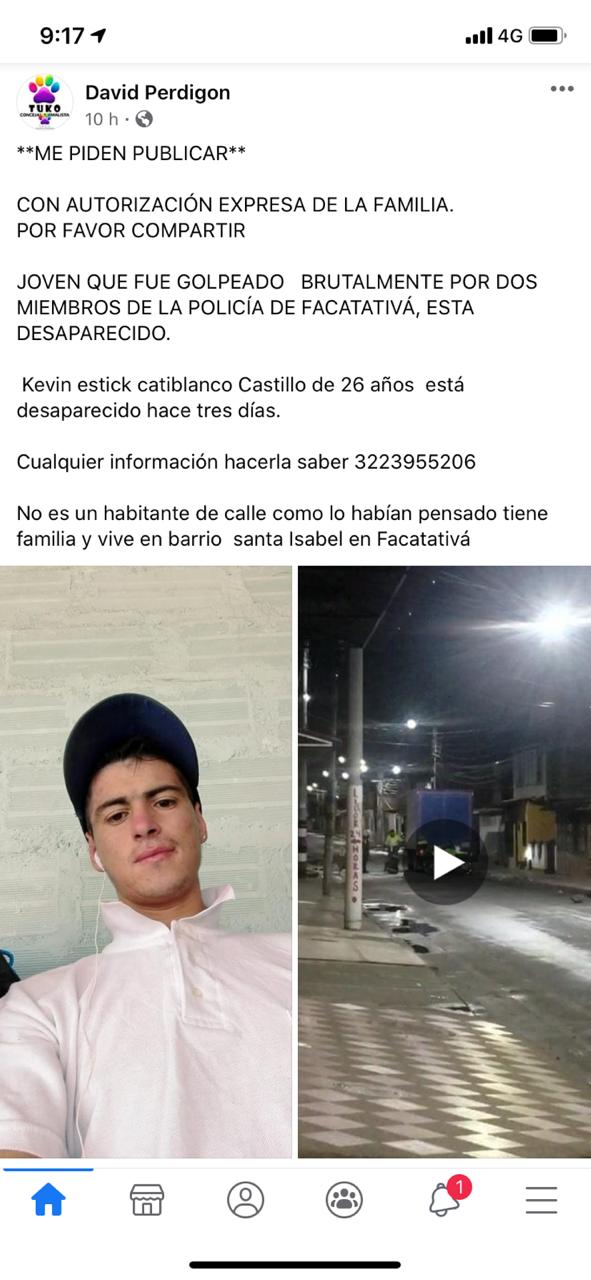 Facatativá, policía afirma que nunca golpearon a joven desaparecido denunciado por Concejal Perdigón