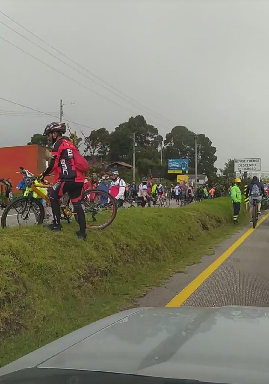La comunidad del municipio vecino del El Rosal y el Alto del Vino nos envían estas fotografías, al parecer para algunos ciclistas de sabana occidente se terminó la cuarentena, como observamos en las fotografías algunos de ellos no tienen tapabocas y tampoco respetan el distanciamiento social, el decreto de aislamiento selectivo comienza a implementarse desde el primero de septiembre, sin embargo el gobierno nacional es claro que se deben continuar con todos protocolos de bioseguridad y distanciamiento social.