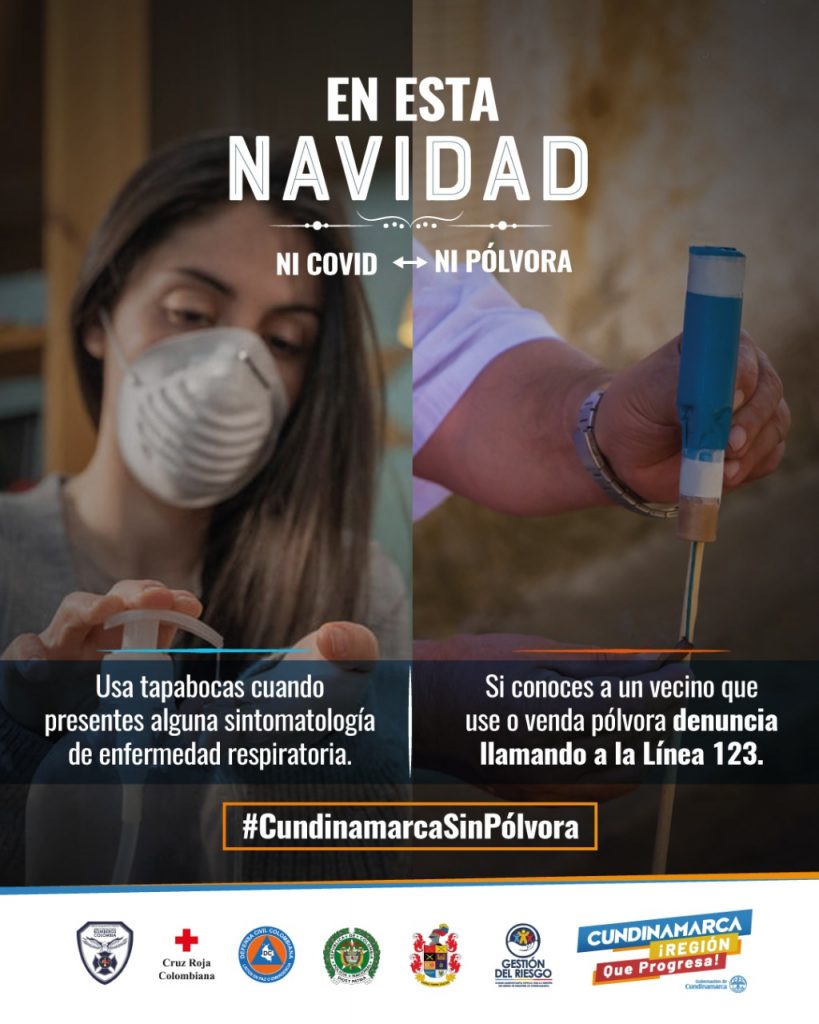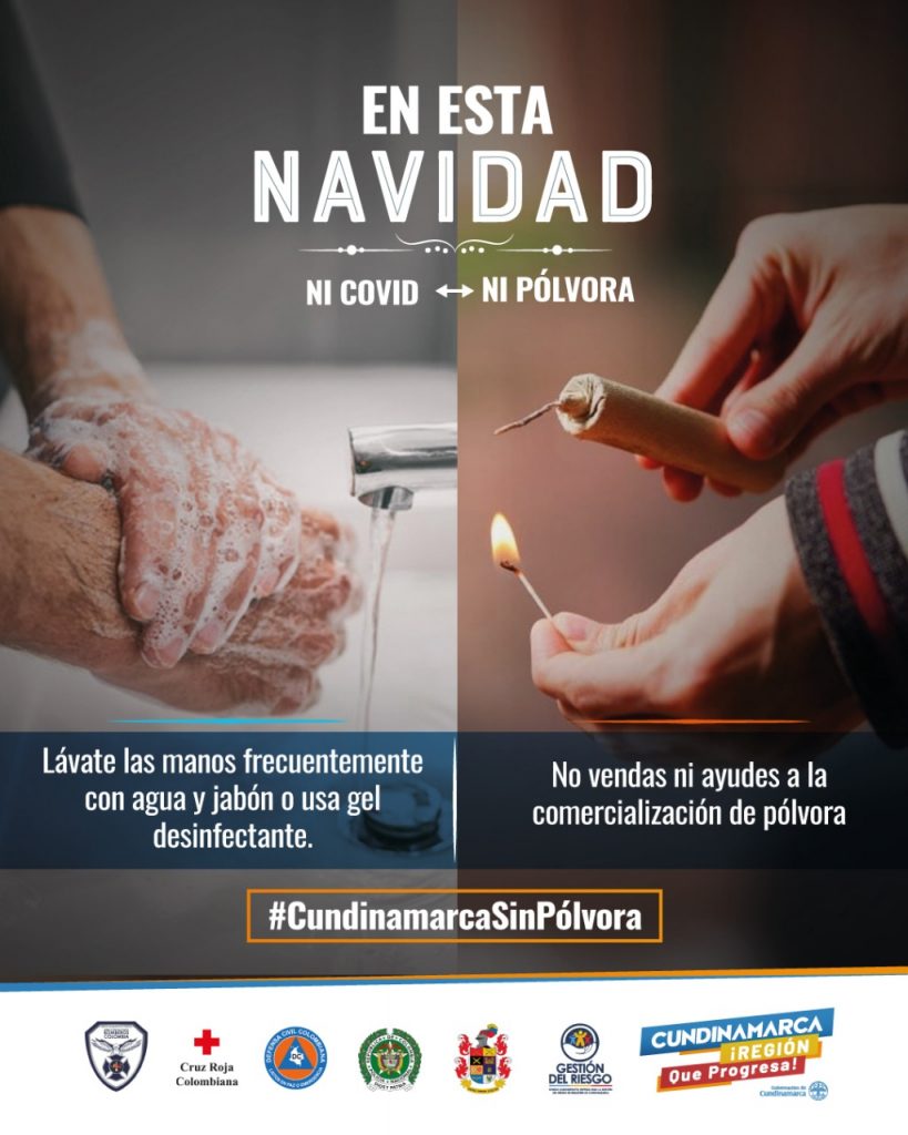 Por todo ello, la Gobernación de Cundinamarca invita a los cundinamarqueses a una Navidad, sin Covid ni pólvora, “recordemos que en estas festividades los mejores regalos son la salud y la vida, la invitación es evitar las aglomeraciones y reuniones masivas, no olvidemos el uso de tapabocas, lavado correcto de manos y el distanciamiento físico, asimismo, recordemos que está prohibido el uso y expendio ilegal de pólvora en los 116 municipios del departamento, no queremos personas quemadas, preservemos la vida e integridad de nuestros seres queridos” aseguró el Secretario de Salud de Cundinamarca, Gilberto Álvarez Uribe.