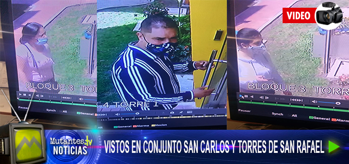 El día de ayer difundieron unas imágenes de un robo que se registró en un apartamento del conjunto San Carlos, un propietario de este conjunto aviso que esas personas habían estado también en el conjunto Torres de san Rafael el mismo día del robo, se revisaron las cámaras de seguridad de este conjunto y se observó a los presuntos ladrones, esperando que la gente abriera puertas, pero no pudieron robar ningún apartamento de este sector. No solo entraron a San Carlos sino que estuvieron al acecho en torres de san Rafael.
