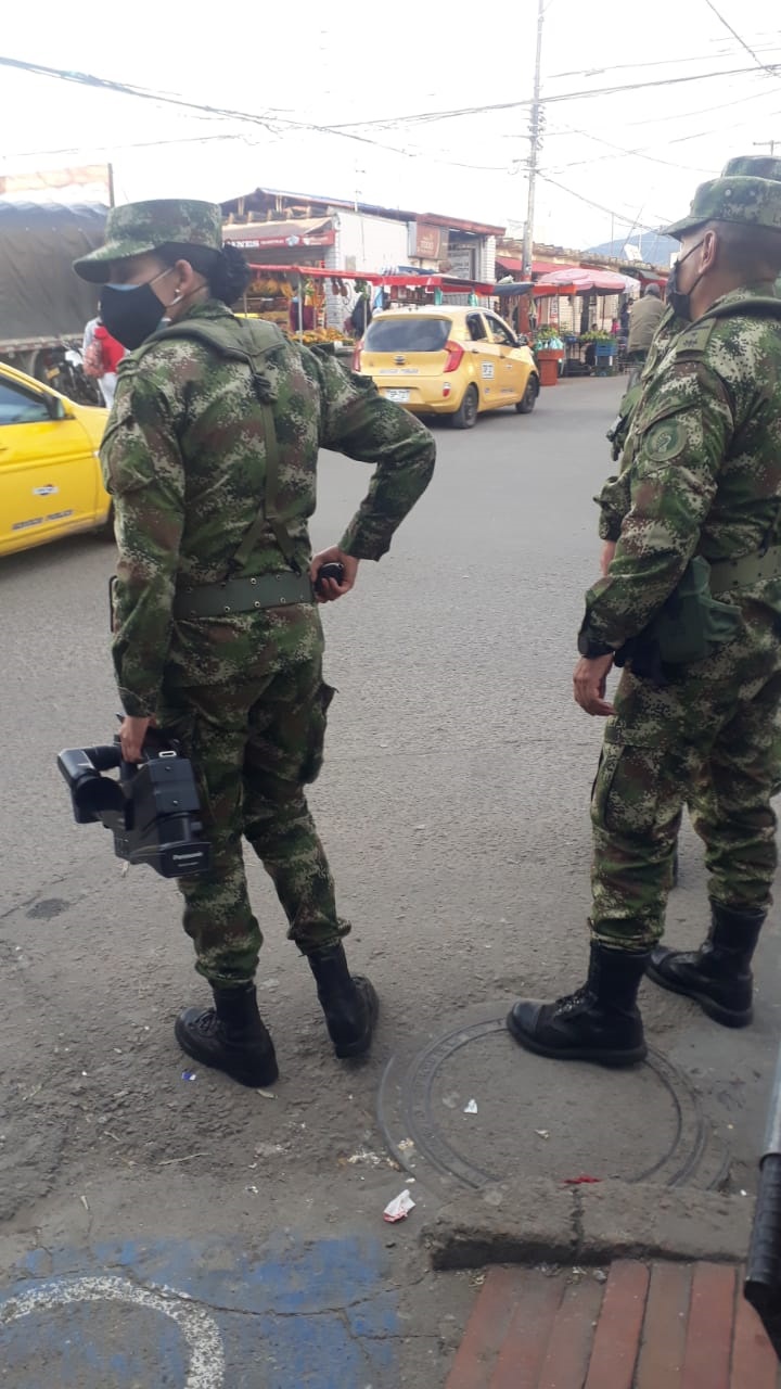 La comunidad y algunos comerciantes afirmaron a Mutantes Tv que personal del Ejército Nacional está grabado a ciudadanos en las calles y muchas veces presuntamente también reteniendo personas.