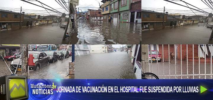 Debido al fuerte aguacero que se presentó en la ciudad, la jornada de vacunación que se venía adelantando en el Hospital San Rafael para mayores de 45 años contra la Covid- 19, debió ser suspendida. El parqueadero de urgencias y las vías contiguas al hospital quedaron totalmente inundadas.