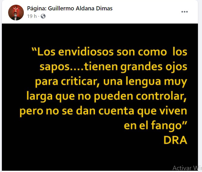 Estas palabras expresadas por el Alcalde Guillermo Aldana en su página oficial de Facebook sorprendió algunos ciudadanos, líderes de opinión y políticos de oposición, según algunas personas en redes sociales el lenguaje no es el más apropiado para un mandatario local , se ha vuelto costumbre por parte del alcalde responsabilizar de su mala imagen en redes sociales y en las calles algunos medios de comunicación, contradictores y políticos de oposición, lo peor del caso es que nunca lo dice con nombres propios no es la primera vez que el alcalde utiliza este lenguaje , la última vez tildo de terroristas algunas personas que realizaron publicaciones relacionadas por el atentando que sufrió uno de los poliductos de la empresa el Ecopetrol que ocasionó una emergencia ambiental en el municipio durante casi dos semanas El Concejala Andrés Ubaque expresó lo siguiente en sus redes Sociales. Me encontré esta perla en la página de nuestro talentoso alcalde.«los envidiosos» : seguro estará hablando de los municipios cercanos como Madrid, Mosquera, Funza, que se mueren de envidia al ver como este alcalde nos sacó del atraso y nos tiene en un desarrollo desbordado.«Los lengua larga y ojos grandes» : seguro estamos ahí todos aquellos que no tragamos entero, estamos ahí los inconformes, los que nos atrevemos a decirle a el alcalde y sus funcionarios cuando fallan, los que defendemos el municipio, y les anunció, tendré más larga la lengua y más grandes los ojos porque defenderemos nuestra tierra.» Los que vivimos en el fango » : eso es cierto, aquí estamos los que vivimos en este fango 160 mil habitantes que debemos soportar las vías maltrechas, las veredas destruidas, la inseguridad rampante, los semáforos dañados.ALCALDE DEJE DE PUBLICAR ESTE TIPO DE COSAS Y VAMOS A CAMINAR EL PUEBLO, FACATATIVÁ NECESITA ALCALDE QUE LE CORRA SANGRE POR LAS VENAS.