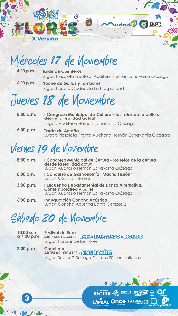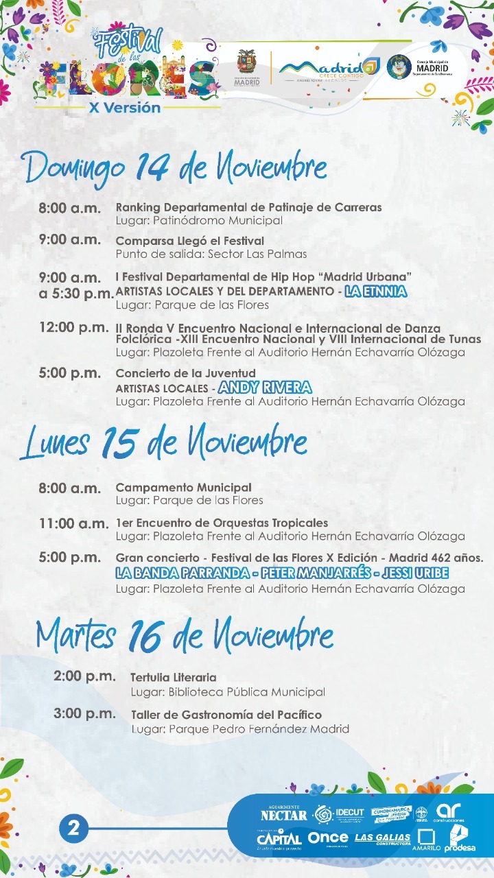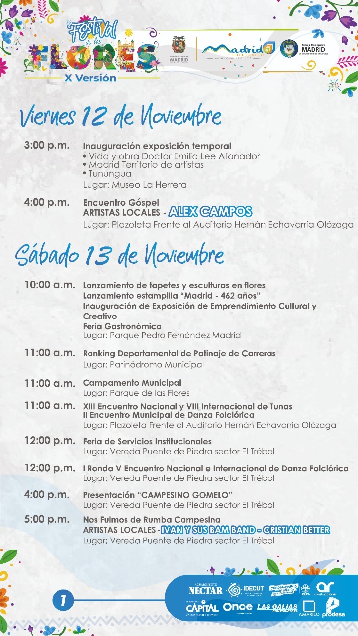Jessi Uribe, Peter Manjarrés, Andy Rivera, Álex Campos, Alan Ramírez, La Etnnia, Ingrand, Raza y El Sagrado, Iván y sus Bam Band, La Banda Parranda, Cristian Better, y más de 40 artistas locales hacen parte de la programación oficial del mejor festival de la región: #FestivalDeLasFloresXVersión . Madrid, la Bella Flor de la Sabana es Tradición, Progreso y Alegría.¡Los esperamos! .