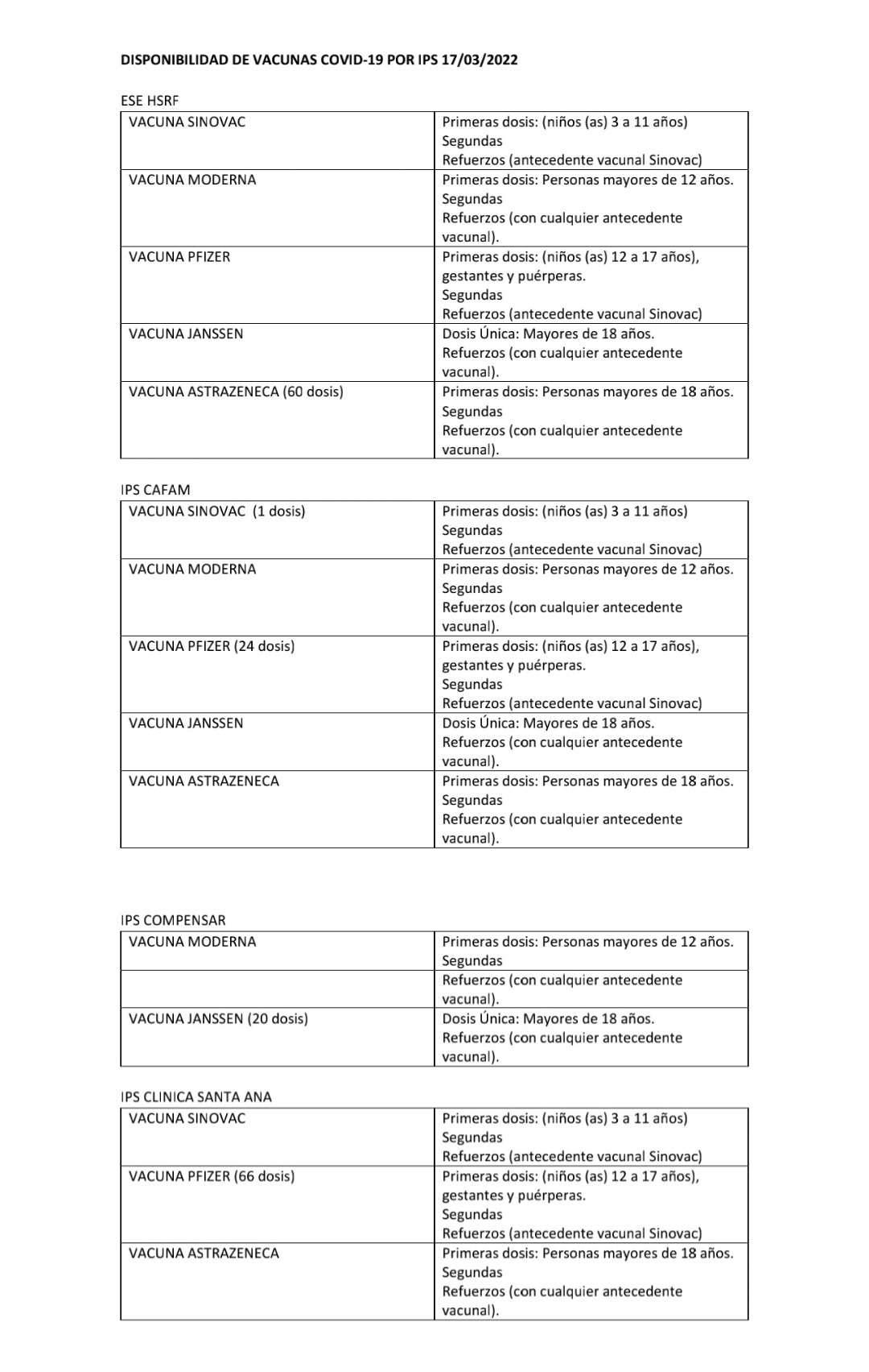 La Administración Municipal, a través de la Secretaría de Salud informa a la comunidad en general la disponibilidad de vacunas contra el COVID-19 en nuestro municipio. Acérquese y vacúnese en cualquiera de las IPS de nuestro municipio.