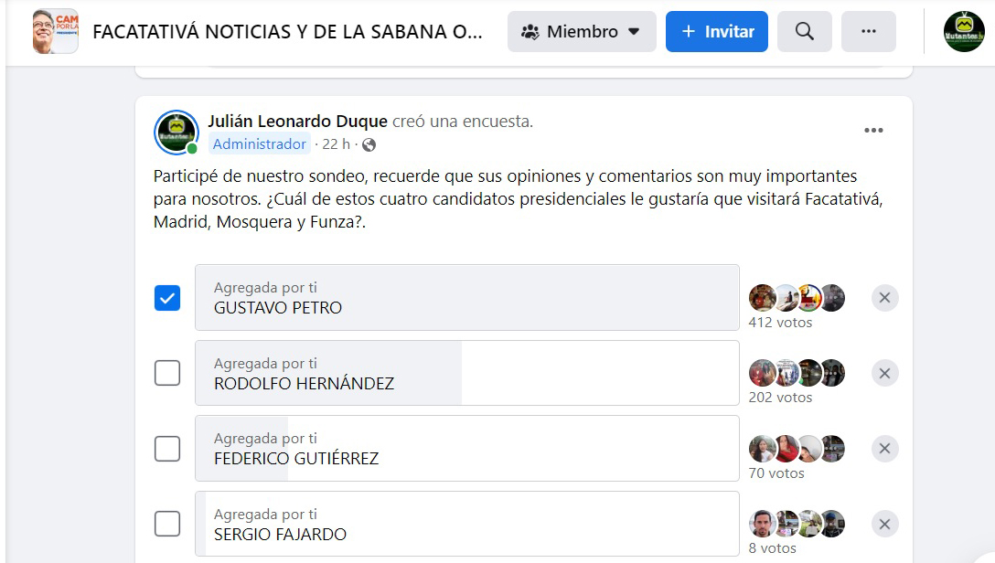 CLIC PARA VER EL SONDEO EN NUESTRO GRUPO DE FACATATIVÀ NOTICIAS Y SABANA OCCIENTE