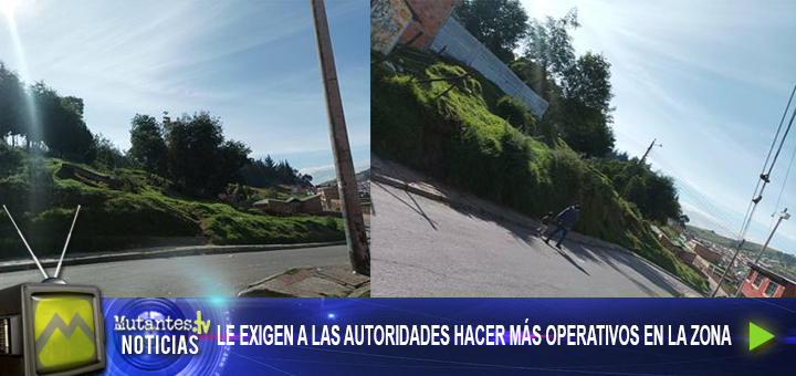 La comunidad quiere hacer un llamado a la Policía y Ejército Nacional para que realicen operativos en la zona en horas de la tarde y noche por qué ya uno no puede pasar por ese lado debido a estas personas que ya se están apoderando de ese lado del barrio. Queremos que hagan una noticia con esta problemática para tener atención de las autoridades para que no se avance este problema y proteger la vida de las personas que suben por ese lado hacia sus casas luego de llegar del trabajo».