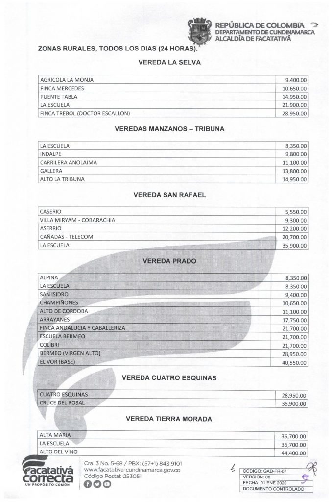 El decreto 029 del 26 de enero de 2023. por medio del cual se fijan las tarifas para la prestación del servicio público de transporte terrestre automotor en las modalidades de transporte colectivo. Trasporte mixto y transporte individual de pasajeros en el municipio de Facatativá.