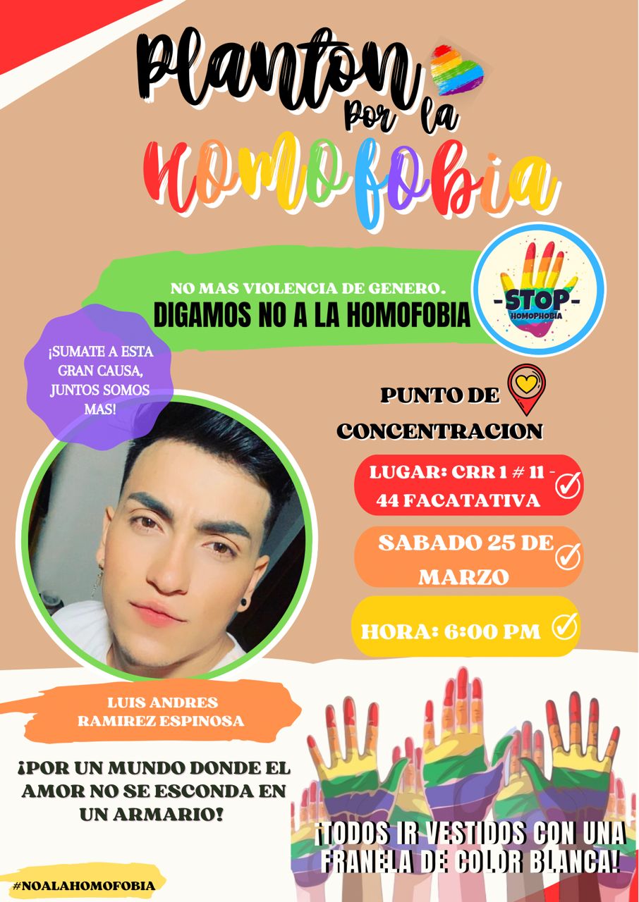 El motivo de mi mensaje es para darles a conocer un evento que ocurrió el día Domingo 19 de marzo a las 6:00 am en el Municipio de Facatativá – Cundinamarca. Unos amigos de la comunidad LBGTI, venían pasando por el frente de una Discoteca de la zona de la carrera 1 , uno de los guardias de seguridad comienza a agredir verbalmente a una de ellas por ser transexual, la homofobia fue la causante de un hecho cruel el cual ocurrió esa mañana.