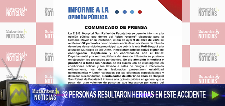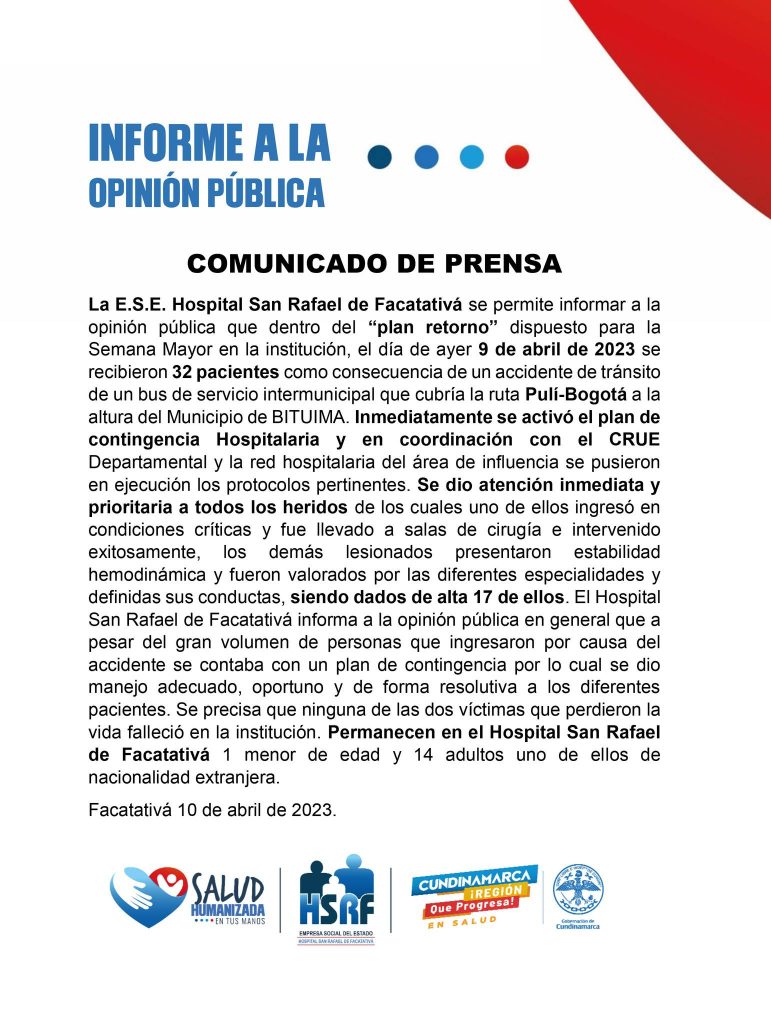 Facatativá, Hospital San Rafael rinde informe sobre accidente presentado en la vía Pulí- Bogotà a la altura del municipio de Bituima