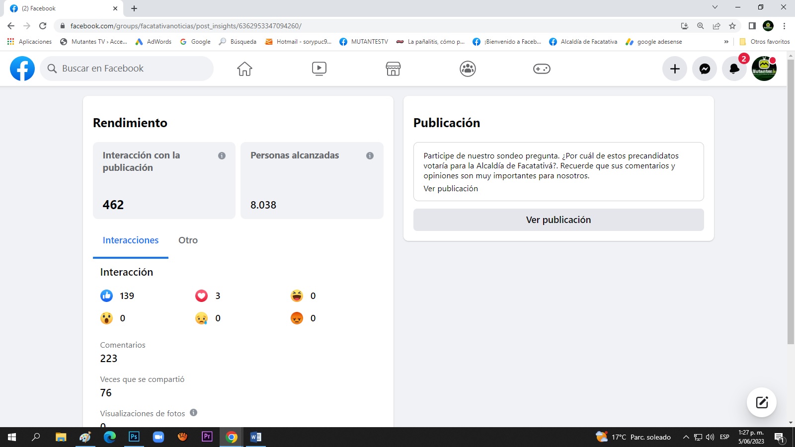 Nivel de alcance de la publicación