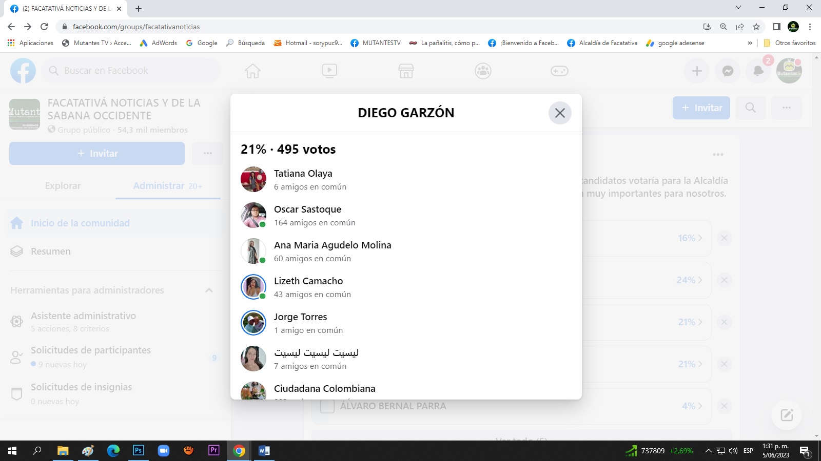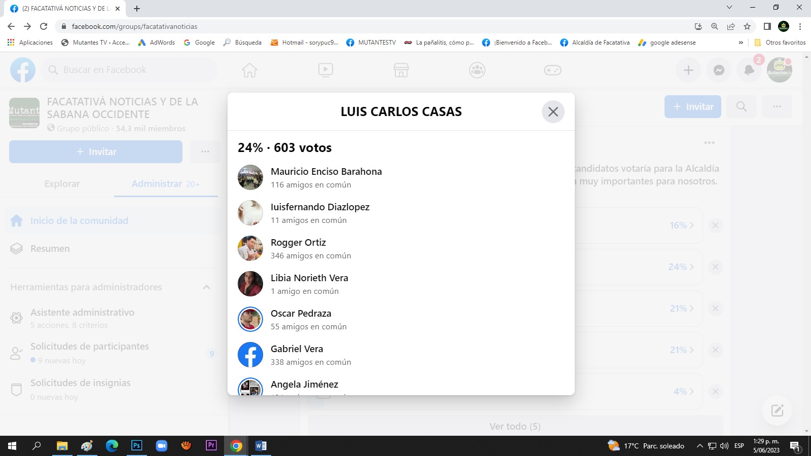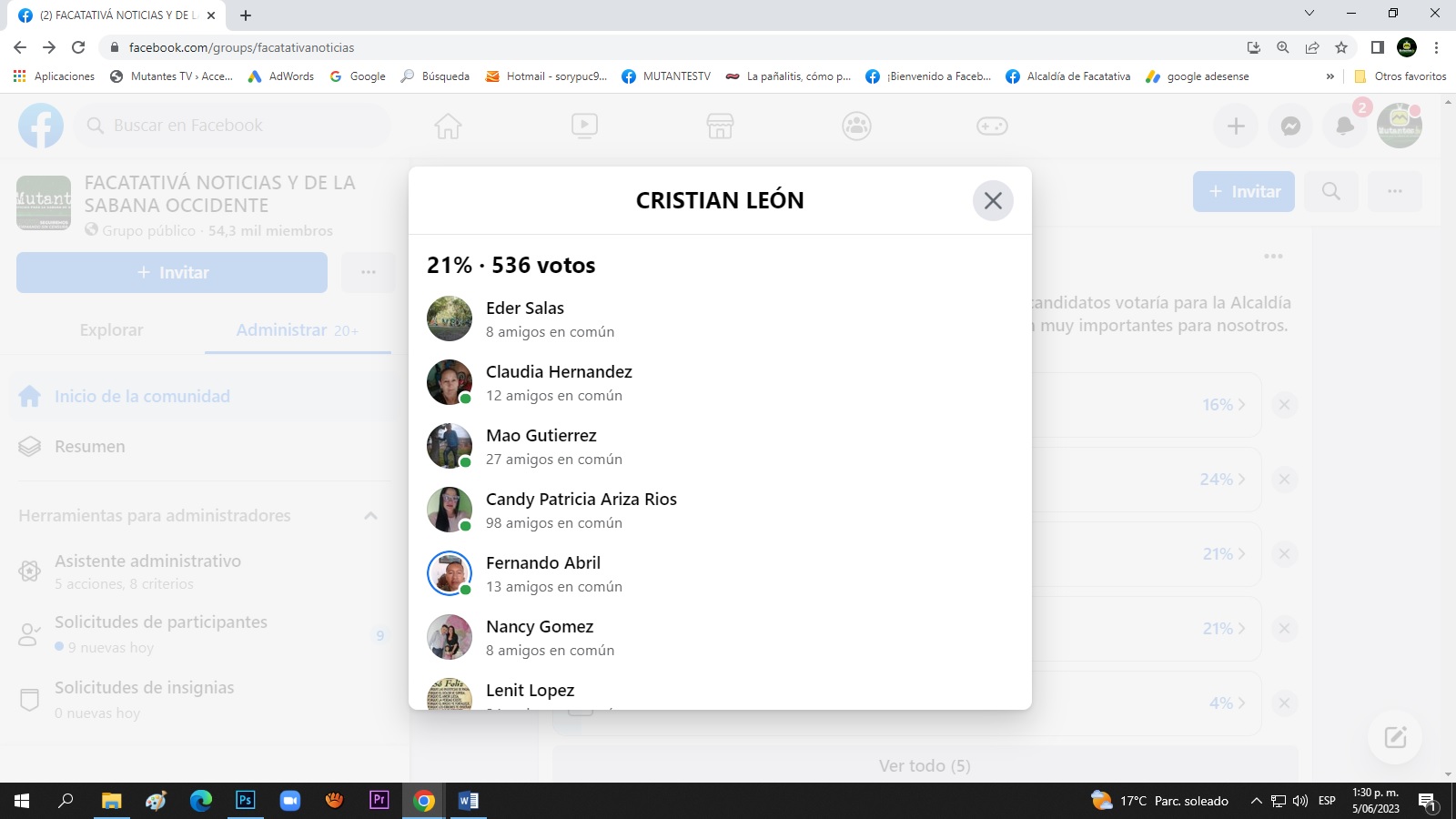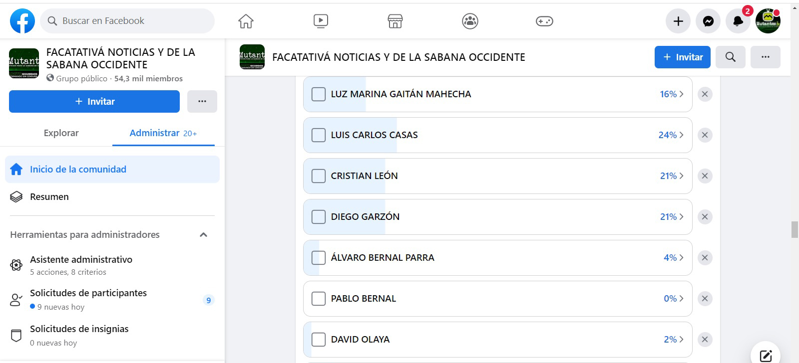 El pasado 3 de junio nuestro medio de comunicación realizo un sondeo sobre los precandidatos más sonados para la Alcaldía de Facatativá. Luis Carlos Casas obtuvo el mayor porcentaje del sondeo con un 24 % de la votación, seguido de Cristian León con un 21% y Diego Garzón que obtuvo un porcentaje similar 21%, el sondeo fue reñido entre Cristian León y Diego Garzón que tuvieron un empate técnico en cuanto a porcentajes, sin embargo, Cristian León obtuvo 534 votos, mientras Diego Garzón 495 votos.