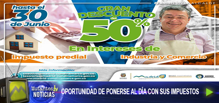 50% de descuento a morosos por impuestos, ofrece la Alcaldía de Madrid Cundinamarca