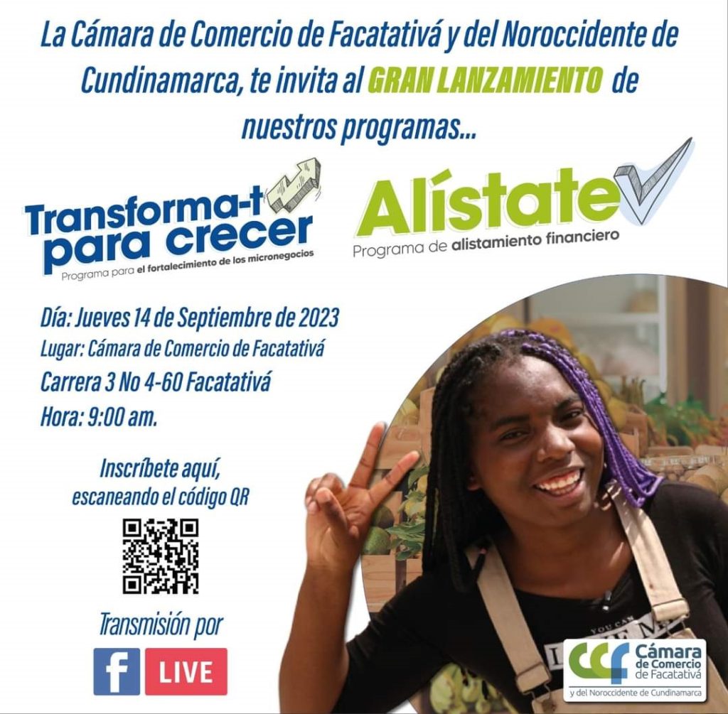La Cámara de Comercio de Facatativá y del Noroccidente de Cundinamarca abre el programa para la región TRANSFORMA-T para CRECER y ALISTATE, actividades para el fortalecimiento de los micronegocios y alistamiento financiero.