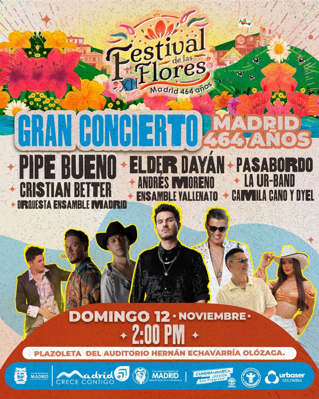La Urband, Camila Cano y Dyel, Cristián Better, Andrés Moreno, Pasabordo, Elder Dayán y el gran cierre con Pipe Bueno, se vivirá este próximo 12 de noviembre en el municipio de Madrid, una invitación especial de Mutantes TV a la comunidad.También tendremos la presentación de artistas locales, Orquesta Ensamble Madrid y Ensamble Vallenato