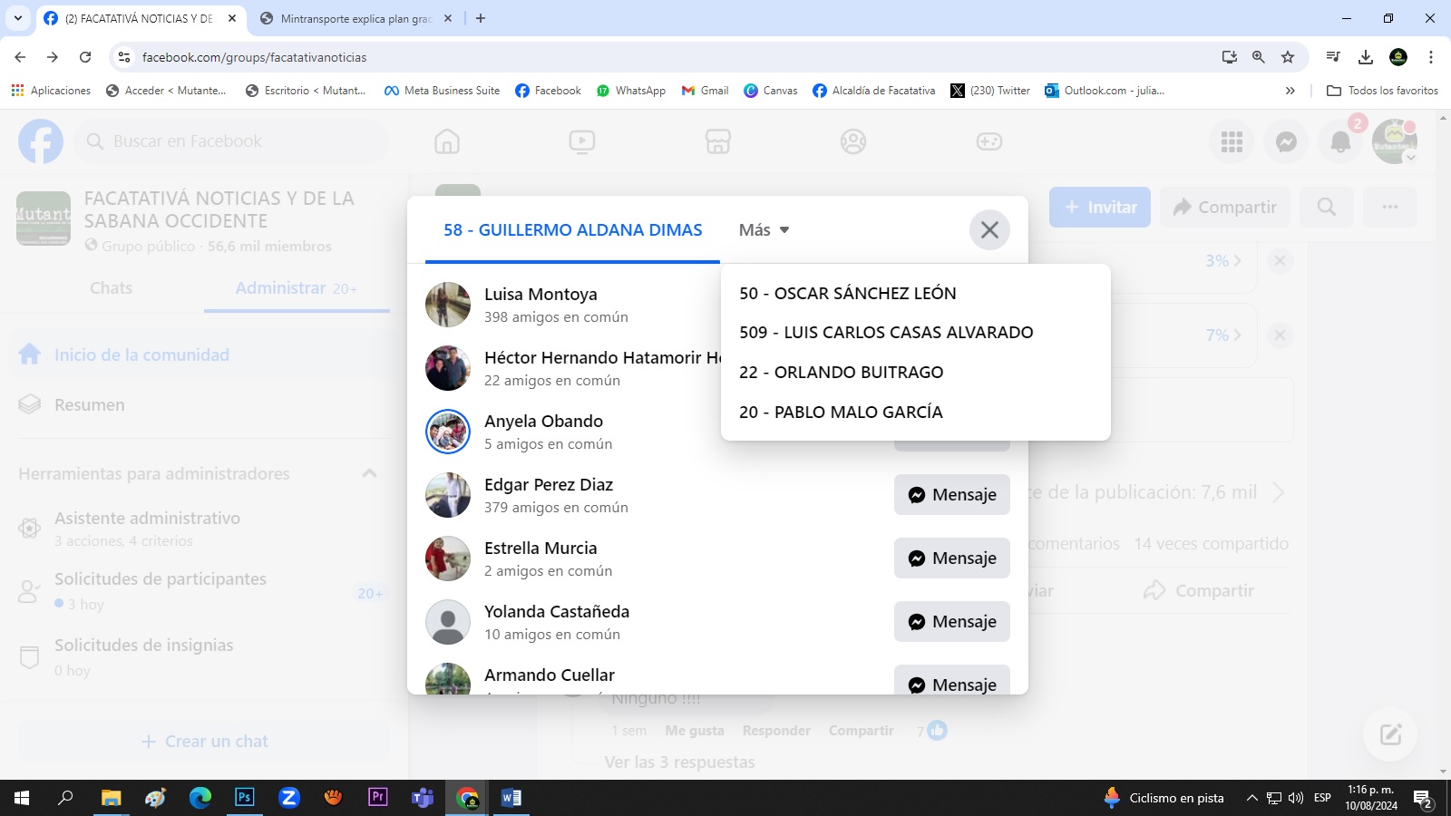 El alcalde Luis Carlos Casas obtuvo el 75% de nivel de aceptación, seguido de Guillermo Aldana con 8%, Oscar Sánchez León 7%, Pablo Malo García 4% y Orlando Buitrago 3% El pasado 2 de agosto Mutantes Tv realizó un sondeo preguntando lo siguiente. Participe de nuestro sondeo ¿Cuál de estos 5 alcaldes de Facatativá le ha parecido que ha realizo mejor gestión en nuestra ciudad? Recuerde que sus opiniones y comentarios son muy importantes para Nosotros.