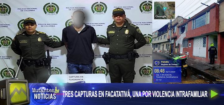 Tres hombres fueron capturados en diferentes hechos este fin de semana en Facatativá. Por el delito de violencia intrafamiliar fue capturado un sujeto de 31 años de edad que sostenía una discusión con su pareja sentimental y en medio de la discusión la lanzó desde un segundo piso. La agredida sufrió lesiones en la cabeza y hombros, y tuvo que ser remitida a un centro asistencial. El agresor fue puesto a disposición de la autoridad competente.