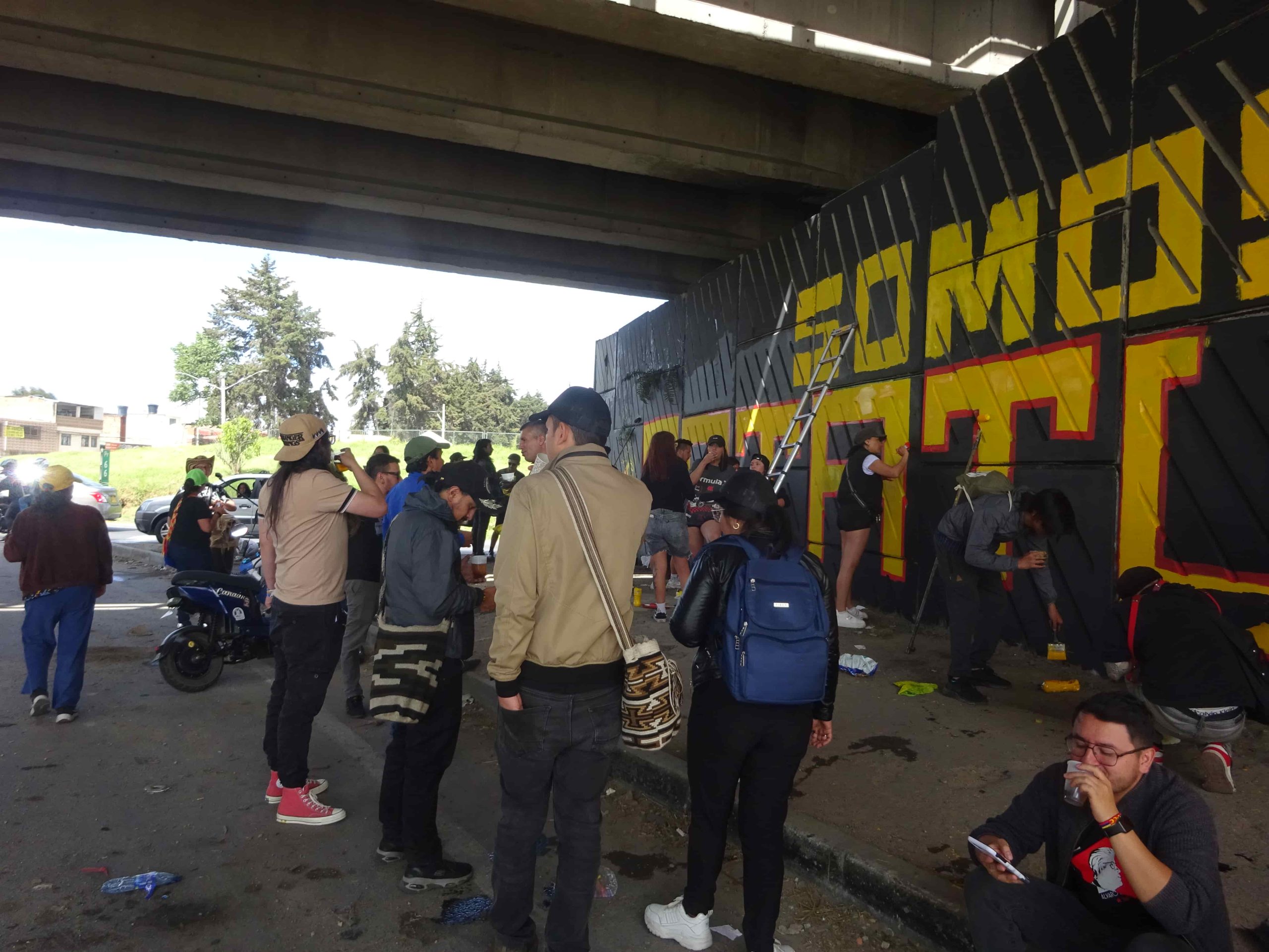 En el lugar confluyeron importantes colectivos y personalidades de la política joven de los municipios de Madrid, Mosquera, Facatativá y Funza, con el convencimiento de brindar un apoyo moral y artístico a quienes han sufrido y sufren la violencia del conflicto armado. Uno de los murales citaba la sonada frase en apoyo a las madres de los desaparecidos en Medellín: «Las cuchas tienen razón». El otro de los murales clama por la población civil sometida al conflicto armado (en el Catatumbo y en toda Colombia) y a las condiciones sociales de pobreza que sufren muchos territorios de nuestro país.