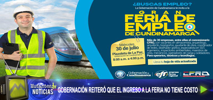 La Gobernación de Cundinamarca anunció la realización de su Feria de Empleo, un evento que reunirá a más de 30 empresas del sector público y privado, incluyendo la Concesionaria Férrea de Occidente, para ofrecer vacantes en distintas áreas.