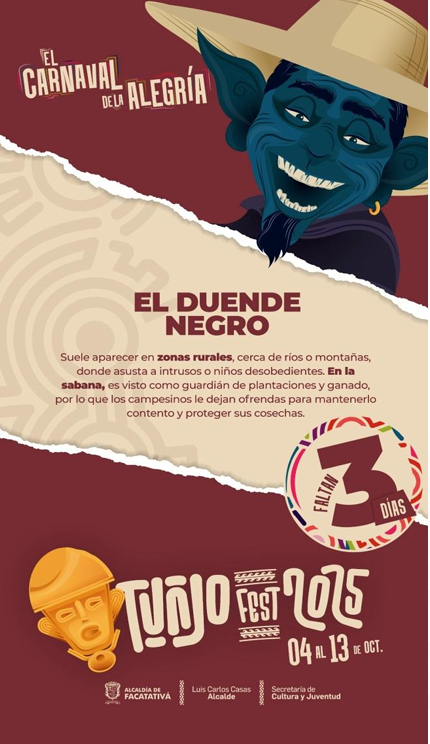 La inauguración del Tunjo Fest 2025, se realizará el sábado 4 de octubre con un gran concierto de músicos facatativeños desde las 7 de la noche en el Parque Principal, que será antecedido por el desfile de modas Tecura, y Finsuca el Desfile de la Alegría.