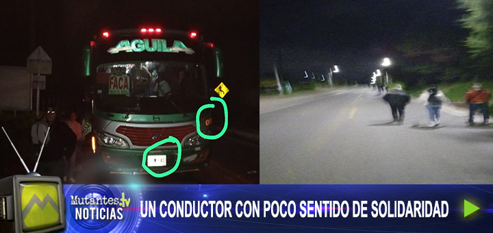 Un conductor de la flota Águila de manera irresponsable dejo a varios pasajeros tirados en la vía El Rosal – Facatativá, según relataron los usuarios a Mutantes Tv le pidieron al conductor de manera...